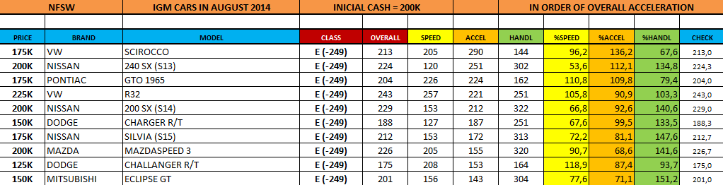 "class E" cars. other ways of sorting by overall speed by speed ratio Back to in order of appearance by acceleration ratio by overall handling by handling ratio