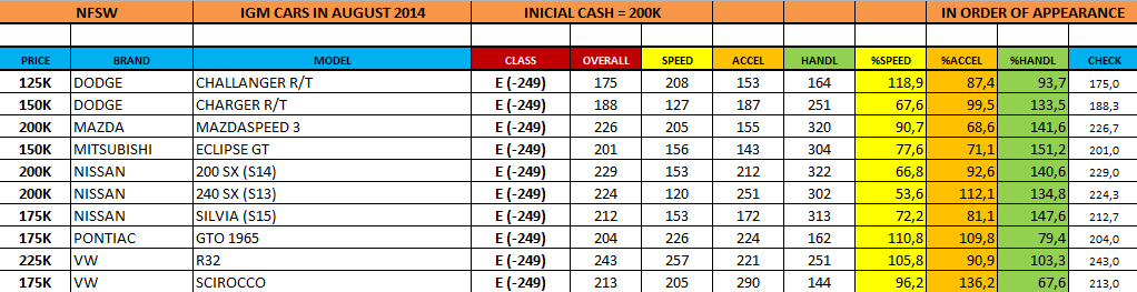 "class E" cars. other ways of sorting by overall speed by speed ratio by overall acceleration by acceleration ratio by overall handling by handling ratio